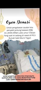 Pria yang akrab disapa Bembenk ini menuturkan, hal itu diketahuinya saat ada keluarga asal Medan, yang berupaya mengobati buah hatinya bernama Jihan Afifah Lubis. Bayi berusia 5 bulan itu diketahui mengidap penyakit jantung bawaan sejak lahir.