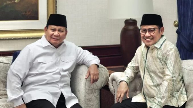 Ketua Umum (Ketum) Partai Kebangkitan Bangsa (PKB) Muhaimin Iskandar atau yang dikenal dengan Cak Imin beserta jajaran partainya tiba di kediaman Ketum Partai Gerindr Prabowo Subianto di Jalan Kertanegara 4, Jakarta Selatan, Jumat (28/4) Sore.