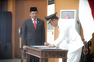 JAKARTA – Menteri Dalam Negeri (Mendagri) Tito Karnavian melantik Prof. Dr. Zudan Arif Fakrulloh, SH, MH sebagai Penjabat (Pj) Gubernur Sulawesi Barat (Sulbar) di Ruang Sasana Bhakti Praja Kementerian Dalam Negeri (Kemendagri) Republik Indonesia, Jumat (12/5/2023).