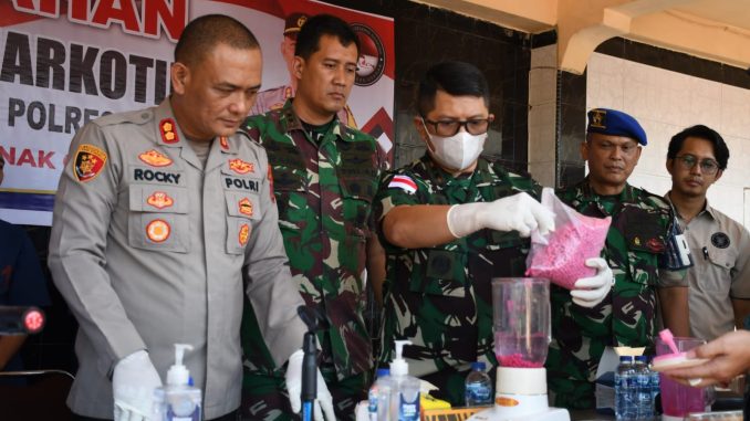 TNI AL, Tanjung Balai,- Komandan Lanal Tanjung Balai Asahan Letkol Laut (P) Aan Prana Tuah Sebayang, S.E., D.W.C., menghadiri pemusnahan barang bukti narkotika dan obat-obatan terlarang jenis sabu seberat 39,638 dan Pil Exstasi dengan berat 8.505,42 Gram.,Jumat (16/06/2023).