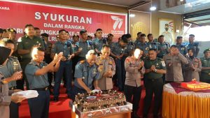 NKRISATU.COM  –  TNI AL, Simeulue,- Pangkalan TNI AL Simeulue berikan kejutan dan ucapan Hut Bhayangkara Ke-77 kepada Polres Simeulue, Polres Aceh Barat Daya, Polres Aceh Selatan, Polres Aceh Singkil secara serentak sebagai bentuk sinergitas TNI-Polri, Senin (03/07/2023)