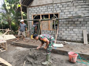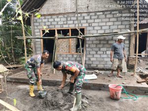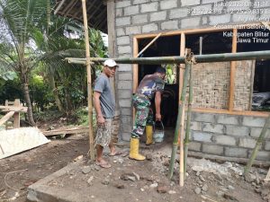 NKRISATU.COM – Blitar – Babinsa Koramil 0808/21 Selorejo Kodim 0808/Blitar Koptu Mujiono bersama anggota yang lain dan warga, melaksanakan kegiatan kerja bakti dan gotong royong dengan sasaran membantu rehab rumah milik Bapak Sirpono, bertempat di Dusun Ngrendeng RT. 2 RW. 4 Desa Ngrendeng Kec. Selorejo Kab. Blitar, Sabtu (8/7/2023).
