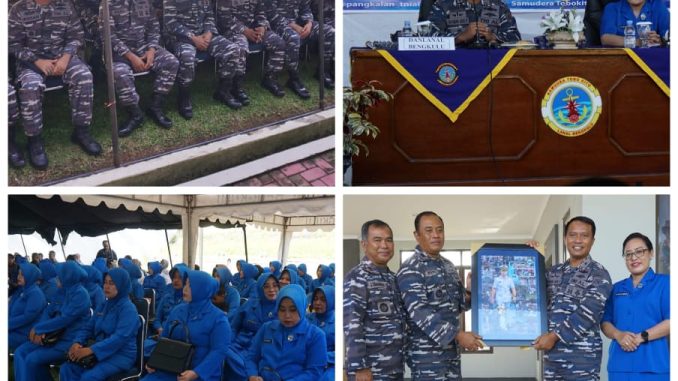 Nkrisatu.com – TNI AL, Bengkulu,- Jelang Upacara Serah Terima Jabatan, Komandan Pangkalan TNI Angkatan Laut (Danlanal) Bengkulu Letkol Laut (P) Nyoman Gede Pradnyana A.S beserta Ketua Jalasenastri Cabang 4 Korcab II DJA I Ny. Dyah Ayu Pradnyana melaksanakan Exit Briefing dengan seluruh Prajurit, PNS dan Jalasenastri Lanal Bengkulu, bertempat di Mako Lanal Bengkulu, Jalan R.E. Martadinata No. 10, Kelurahan Sumber Jaya, Kecamatan Kampung Melayu, Kota Bengkulu. Jum’at (28/07/2023).