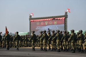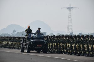 “Kita harus terus mengembangkan kemampuan dan kekuatan pertahanan negara, menyiapkan sumber daya manusia unggul dengan karakter tangguh dan patriotik serta memodernisasi alutsista pada matra darat, laut, dan udara. Namun pertahanan negara tidak cukup hanya ditangani kekuatan militer. Adalah tugas dan kewajiban seluruh warga negara Indonesia, juga adalah kewajiban kita semua untuk selalu membela bangsa dan negara,” kata Prabowo saat membacakan amanat Jokowi.