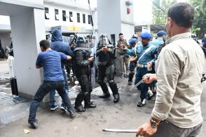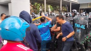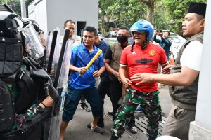 TNI AL, Bandung,- Saling dorong dan sempat rusuh, aksi unjuk rasa warga di depan Markas Komando Pangkalan TNI Angkatan Laut (AL) Bandung berhasil dihalau Tim Pengendali Huru-Hara (PHH) Lanal Bandung, Kamis (07/09/2023).