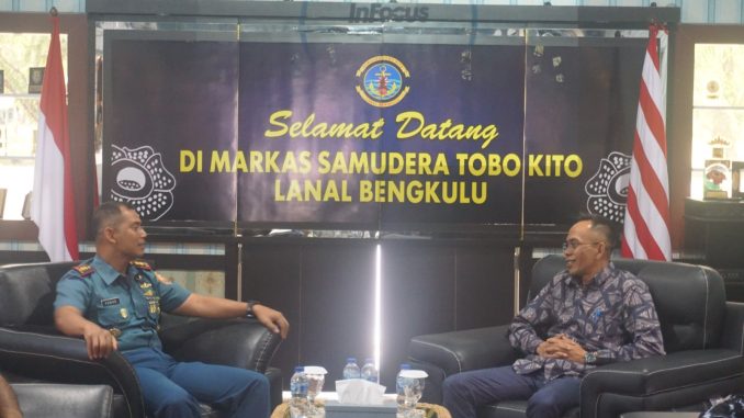TNI AL, Bengkulu,- Komandan Pangkalan TNI Angkatan Laut (Lanal) Bengkulu Letkol Laut (P) Yudho Mewah Angkasa, M.Tr. Opsla., didampingi PgS. Pasops Kapten Laut (P) Juswan Simamora dan Pasintel Kapten Laut (T) Yuli Prabowo menerima dan menyambut baik Tim Audiensi dari Ketua KPU Provinsi Bengkulu Rusman Sudarsono, S.E., beserta Staf di Mako Lanal Bengkulu, Jalan R.E. Martadinata No. 10, Kelurahan Kandang, Kecamatan Kampung Melayu, Kota Bengkulu, Rabu (20/9/2023).