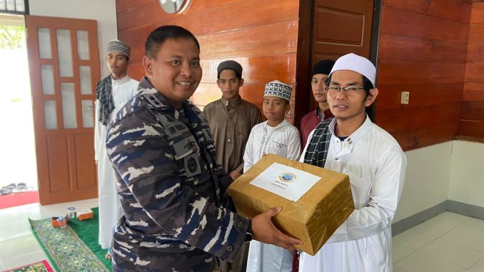 Komandan Pangkalan TNI AL Simeulue Letkol Laut (P) Dwi Herdian Saputra, M.Tr.Opsla., dalam kegiatan ini juga membagikan kebahagiaan kepada para santri dengan menyerahkan tali asih serta diakhiri dengan doa bersama.