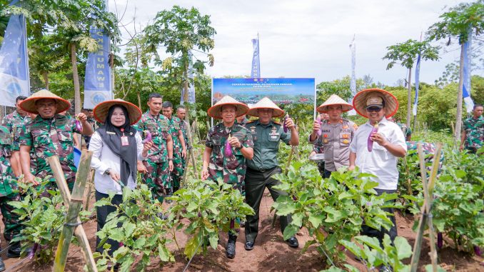 Selanjutnya kegiatan ketahanan pangan panen raya dilaksanakan di lahan milik TNI AL Lanal Lhokseumawe dengan melaksanakan Panen Terong yang sudah saatnya untuk dipetik. Disamping ini juga terdapat tanaman buah semangka dan tanaman sayuran kangkung.