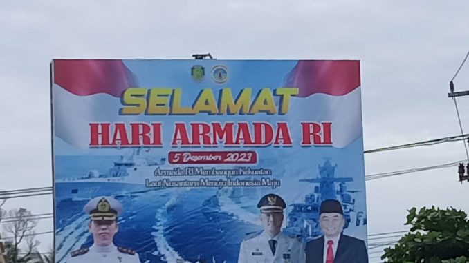 TNI AL, Bengkulu,– Menjelang Hari Armada RI Tahun 2023 yang jatuh pada tanggal 5 Desember mendatang, Pemerintah Kabupaten, Kota dan Provinsi Bengkulu menyambutnya dengan memasang Baliho dibeberapa tempat lokasi strategi jalan utama, Senin (4/12/2023).