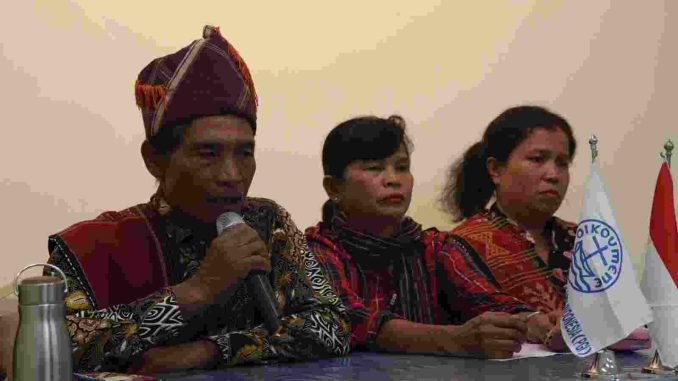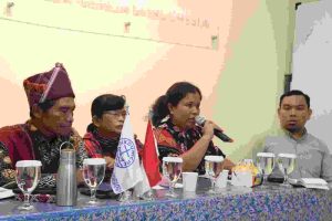 Jakarta, nkrisatu.com – Bertempat di media center Persekutuan gereja gereja di Indonesia (PGI) Jakarta Rabu 11/9/2024, Mangitua Ambarita, Mersi Silalahi, dan Marta Manurung, masyarakat adat dari Sihaporas dan Dolok Parmonangan, Simalungun, Sumatera Utara, telah 3 minggu berada di Jakarta, untuk memperjuangkan hak-haknya atas tanah adat yang telah diberikan secara sepihak oleh pemerintah kepada PT Toba Pulp Lestari (TPL).